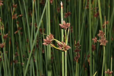 heimisch, lockerer, aufrechter, bizarrer Wuchs, Wurzelstock breitet sich wuchernd aus (in Kübel pflanzen), Blatthalme peitschenförmig, Rückschnitt im Winter, für Wasser- und Sumpfbecken, Teiche, Tümpel