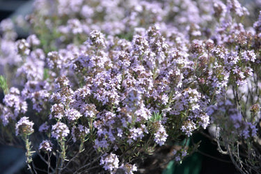 überreich blühender Thymian, wochenlange Blüte, Geschmack sehr herb, weniger für die Küche geeignet, Rückschnitt nach der ersten Blüte, ergibt einen zweiten Blütenflor, besonders gut für den Steingarten, Kräuterbeet, Töpfe, Kästen, durchlässigen, mageren Boden