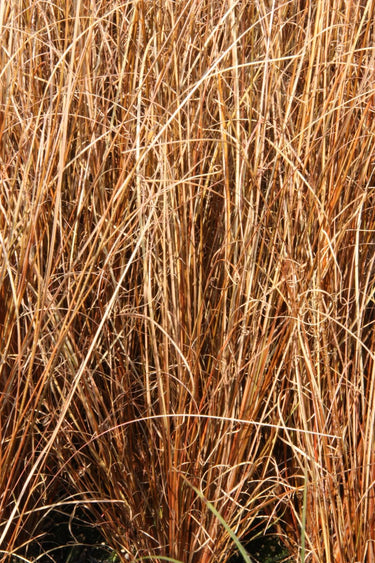 das schmale Laub ist kupfer-bronzefarben, ganzjährig, an der Spitze eingerollt, ziemlich trockenheitsverträglich, Wirkung nur vor einem kontrastfarbenen Hintergrund, kalte Winter übersteht diese Segge nur bei durchlässigem Boden, im Frühling abgestorbenes auszupfen, kein Rückschnitt