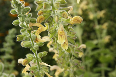 der Waldsalbei ist eine heimische Staude, gelbe Lippenblüten, klebrige Blätter und Stiele, nährstoffreiche, kalkhaltige Lehmböden, teilweise stark aussamend, evtl. Rückschnitt nach der Blüte